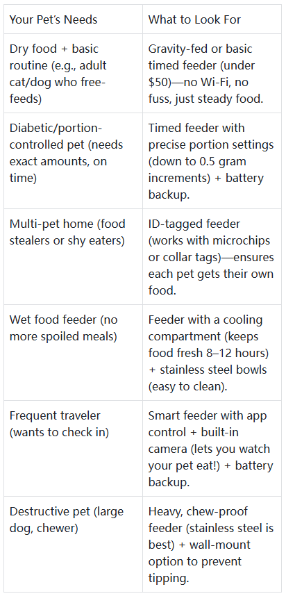 Not all feeders are created equal—here’s what to prioritize based on your pet’s needs: