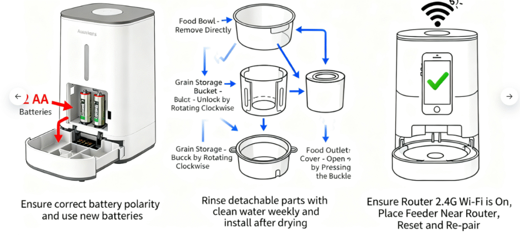 - Pro Tip: Look for feeders with “precision portion control” (most let you set 1–10 small portions per meal)—no more guessing if you gave “too much” or “not enough.”