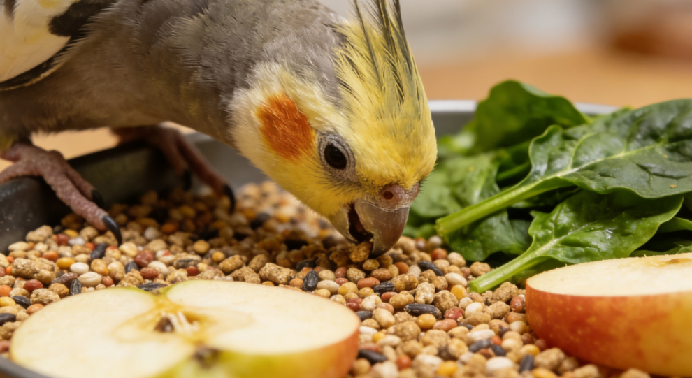 The Truth: Cockatiels need a balanced diet centered on high-quality pellets (they make up 60-70% of their food). Add fresh veggies (spinach, carrots), a little fruit (apple, pear), and occasional seed as a treat—not a staple. I switched my cockatiel, Pixel, to pellets slowly (mixing them with seed at first) and he now eats them happily.