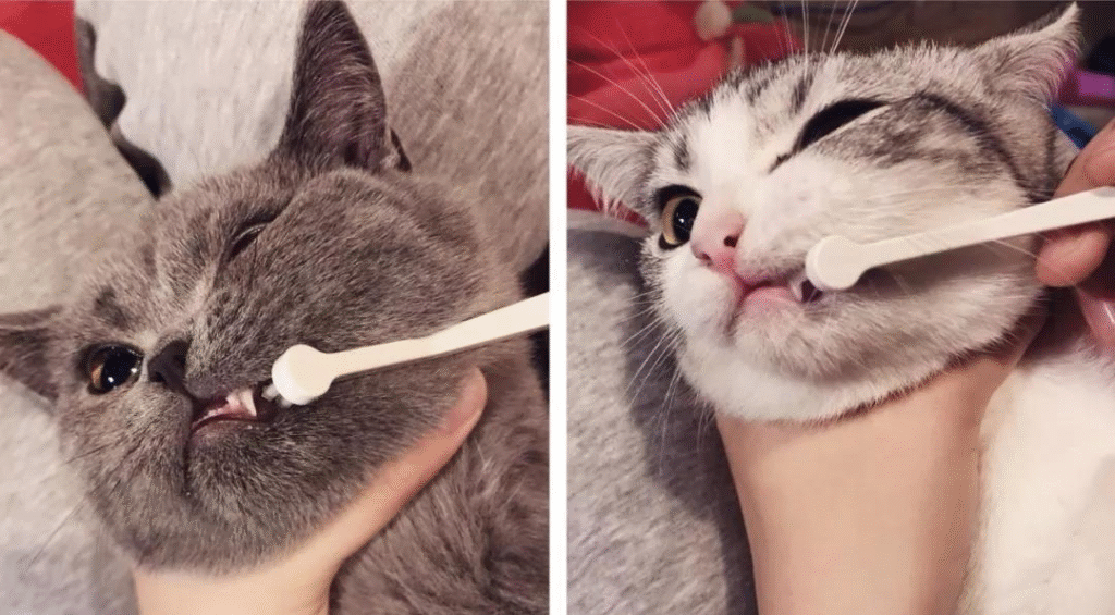 - Brush 2–3 times a week with pet-safe toothpaste (never human toothpaste).